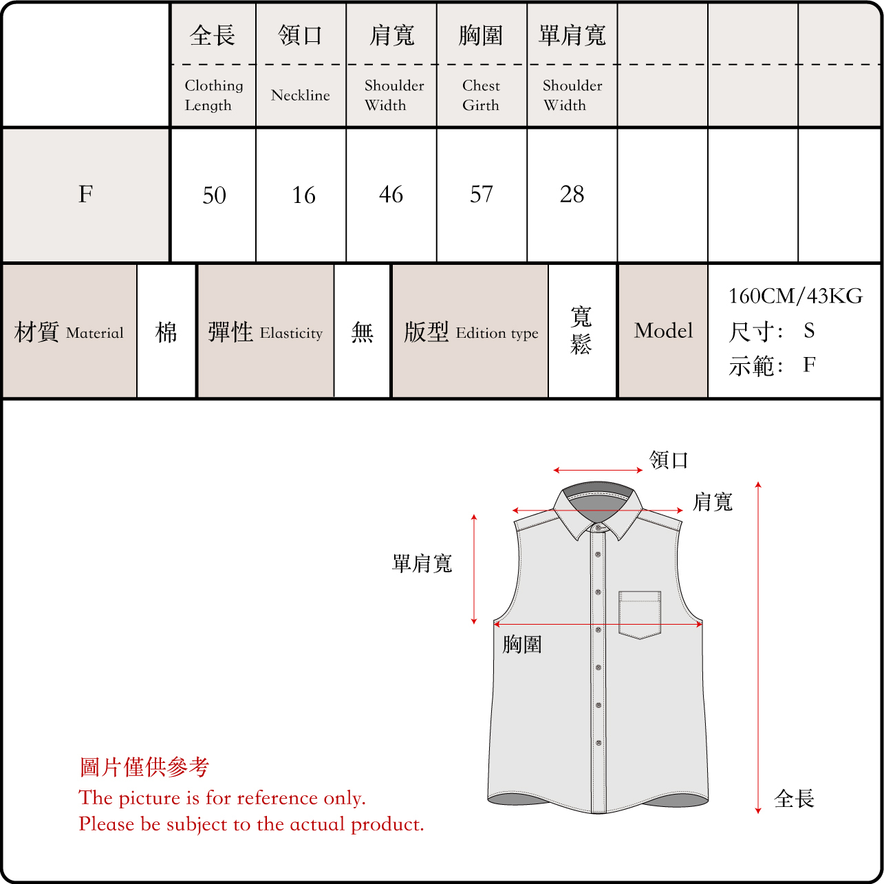挺版排釦背心(自帶墊肩)