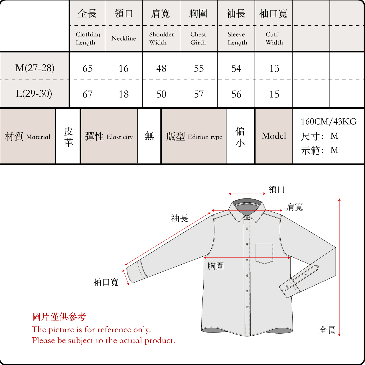 此款版型偏小,照片為模特著M號效果
